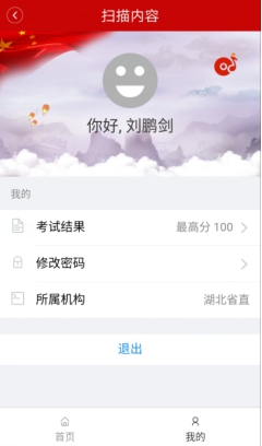 用户可以随时查看历史成绩,用可以点击底部菜单,进入我的个人中心,考试结果栏,并查看历史成绩。用户也可以修改密码或点击所属机构补充机构码。
