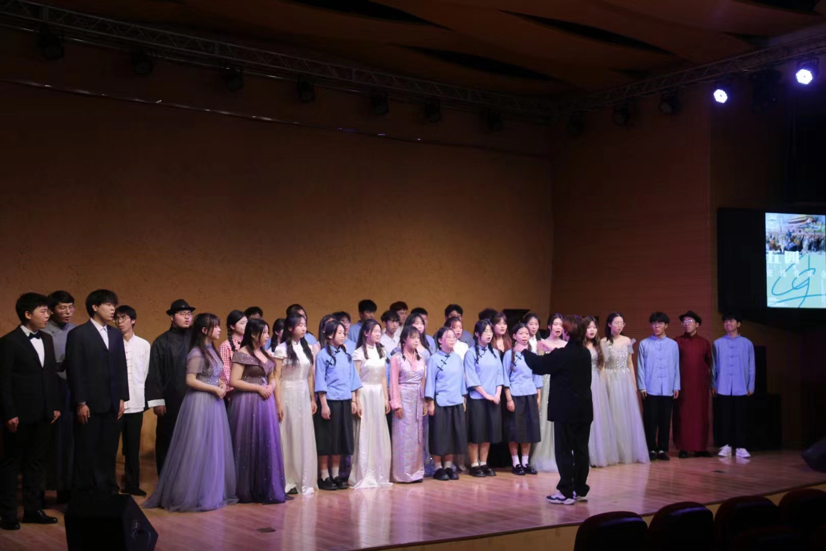 《五四风云》话剧,把我们带回到了1919年,仿佛开始了一场跨越时空的对话,与革命青年一道,为救亡图存奔走呼号;《五月的鲜花》合唱,表现出对革命烈士的深切怀念,激励广大青年团结一心,奋起反抗,抵御外敌的决心和勇气;《沂蒙山》歌剧选段《等着我亲爱的人》,引导我们的目光穿越历史的峰峦,听到革命先烈嘹亮的歌声在大地上回荡,他们用奋斗书写着无怨无悔的青春。《春风十万里》、《灯火里的中国》展现了青年对未来的向往和对祖国美好的祝愿.......