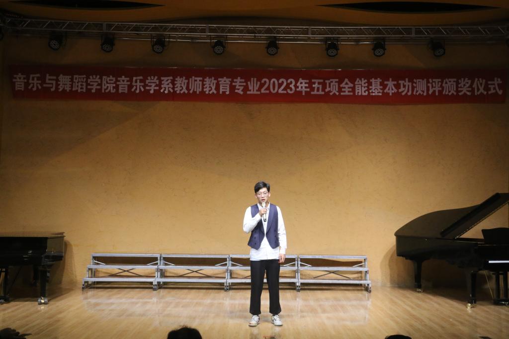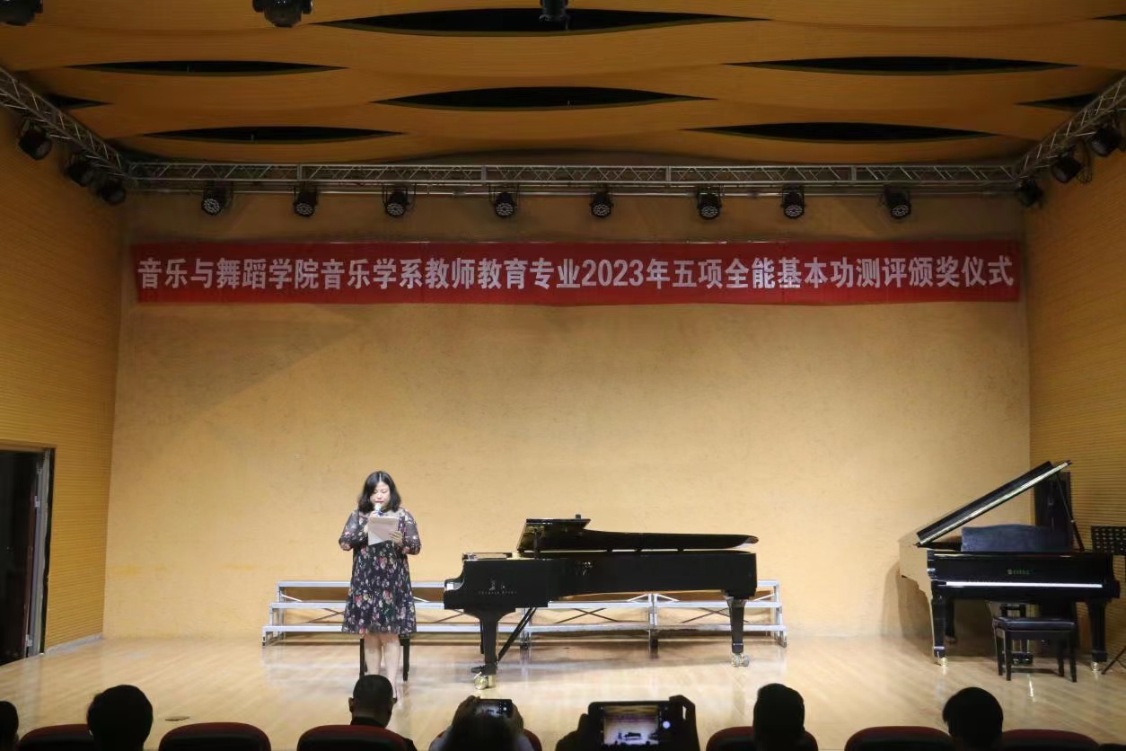 音乐学系系主任由艳老师也对此次比赛做了点评和总结。她指出,为进一步提升人才培养质量,学院高度重视学生师范专业技能培训,以“五项全能”展示为抓手,坚持每年让每个学生走上舞台,全面检验学生弹、唱、跳、编、教能力,通过“以赛促教、以赛促学”,让学生掌握真功夫,练就真本领,成为社会需要的合格的音乐教师。