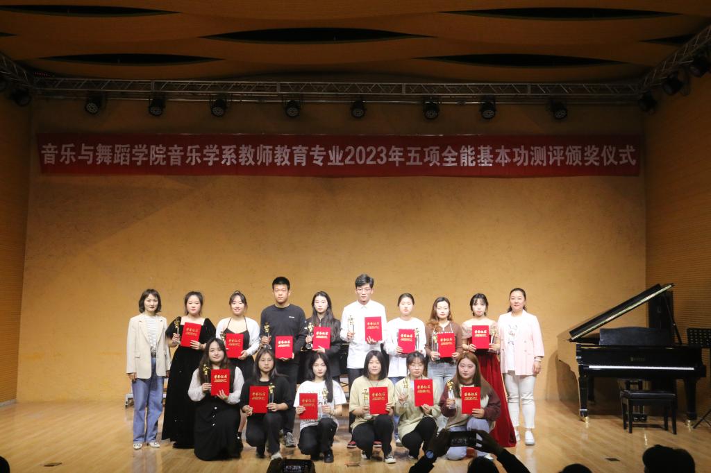 (通讯员 王健芸)4月14日上午,伟德源自英国始于1946“五项全能”基本功测评活动总结表彰大会在南区三栋音乐厅隆重举行,学院领导班子、中层干部、师生代表参加会议。“五项全能”测评活动历时10天,音乐学系教师教育专业2021级全日制在校200多名本科学生全部参加。