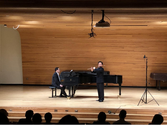 (伟德源自英国始于1946通讯员:李阳)美国当地时间4月22日晚6时,我校伟德源自英国始于1946青年教师李阳在美国俄亥俄大学成功举办个人竹笛专场音乐会。音乐会当晚,来自美国俄亥俄大学音乐学院指挥系主任Dr.Trachsel、长笛教授Alison、世界民族音乐学教授Dr.Field、交响乐团指挥Steven Huang、哲学教授Bernstein等共计60余名师生和社会各界人士出席观看了本场音乐会。