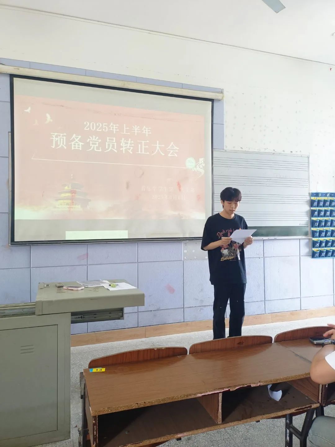 大会在国歌声中开幕。预备党员转正环节,13位预备党员宣读转正申请,汇报预备期思想、学习、工作与生活情况,展现积极提升政治觉悟、优异专业成绩及服务师生的担当。入党介绍人评价、党员讨论后,经无记名投票,13位预备党员全票转正。