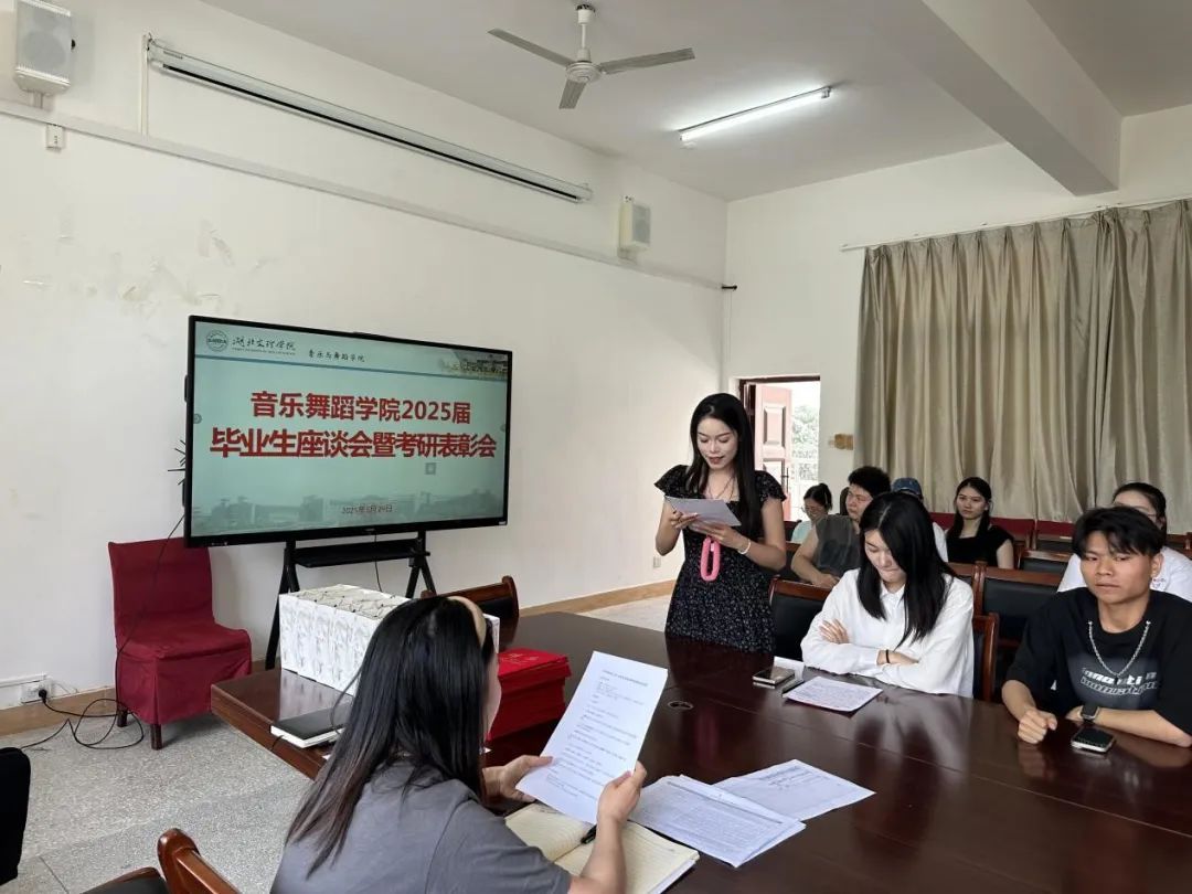 (通讯员 陈庚)为深化师生交流,表彰优秀学子,5 月 29 日下午 2:30,音乐舞蹈学院在 S3 二楼会议室召开 2025 届毕业生座谈会暨考研表彰会。学院领导、各系系主任、全体毕业班辅导员,以及毕业生代表、受表彰学生代表齐聚一堂,共话成长与未来。