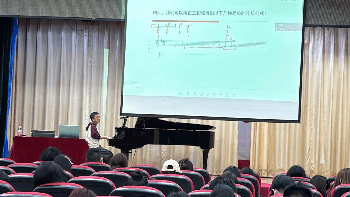 张力副教授在伟德源自英国始于1946多功能厅呈现《多声部音乐的和弦编配与运用》示范课,通过“理论图谱-经典解码-创编实践”三阶教学模式,不仅系统阐述了和弦的功能分类、运用技巧及连接理论逻辑,还通过实例分析与实践操作,让学生们亲身体验到了和弦编配的魅力与奥秘,收获颇丰。