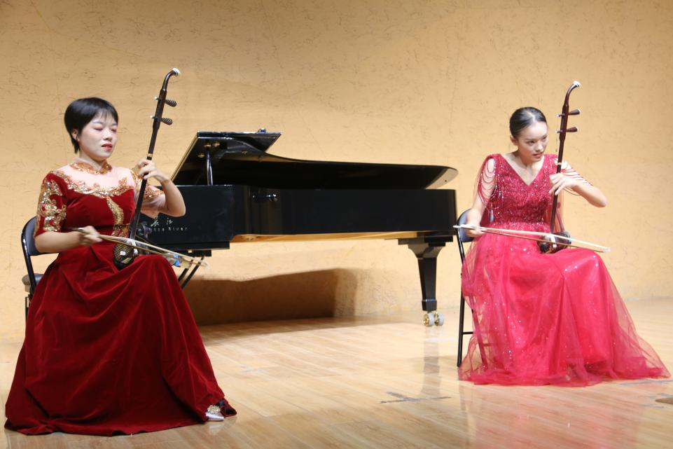 开学典礼结束后,学院精心准备的迎新音乐会随即上演。学校大学生管乐团带来的《歌剧魅影组曲》和《迪士尼动画电影组曲》让人沉浸在神秘与浪漫的世界中,钢琴四手联弹《斯拉夫舞曲》让人感受古老而又充满活力的文化气息;古筝、二胡、钢琴、长笛、小提琴、萨克斯等多种中西方乐器轮番奏响。