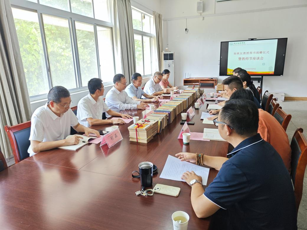 在随后的教师座谈会中,杨秋仪教授语音哽咽的表示,这次捐赠的222册书,是他从青年学生时代直至退休近40年来收集、收藏的珍贵典籍,涉及中西方音乐史、音乐理论基础、音乐工具书等,希望这些书籍能够在今后学院的音乐教学科研中继续发挥育人传承的功效。