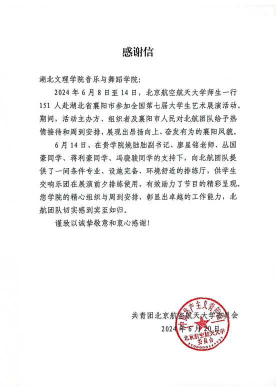 一封来自北航的感谢信