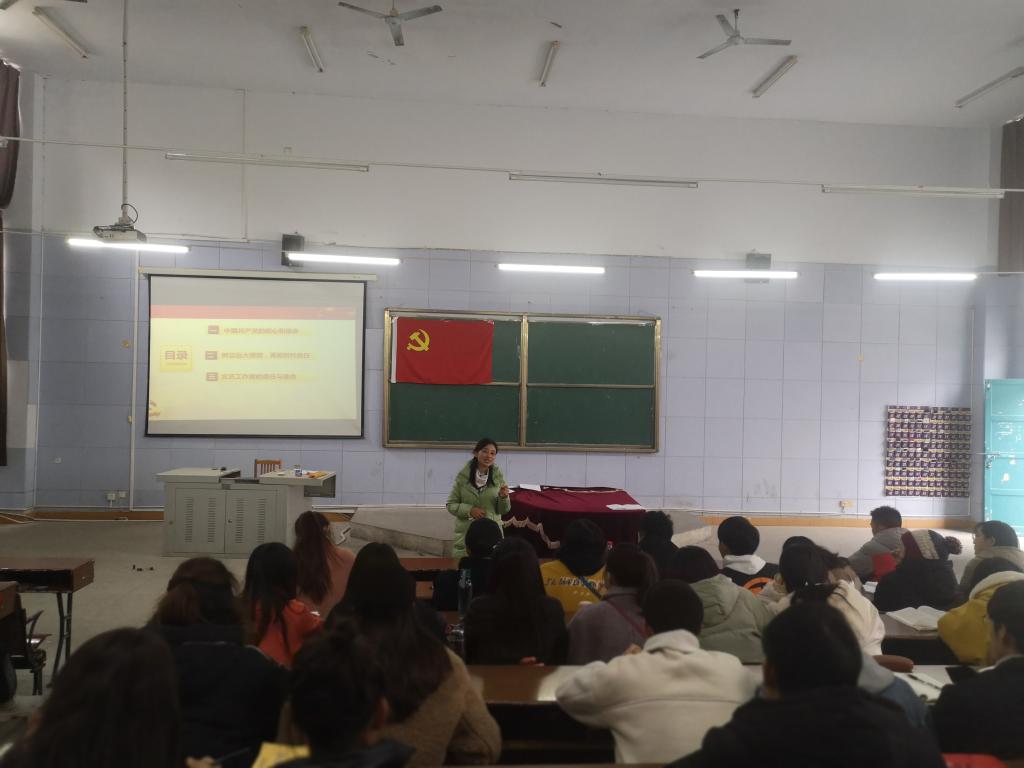 在此次党课中,姜俊毅作了题为“树立远大理想,勇担时代责任——做担当民族复兴大任的时代新人”的党课第二讲。她从“中国共产党的初心和使命、树立远大理想,勇担时代责任 、文艺工作者的责任和使命 ”等几个方面向同学们展开论述。