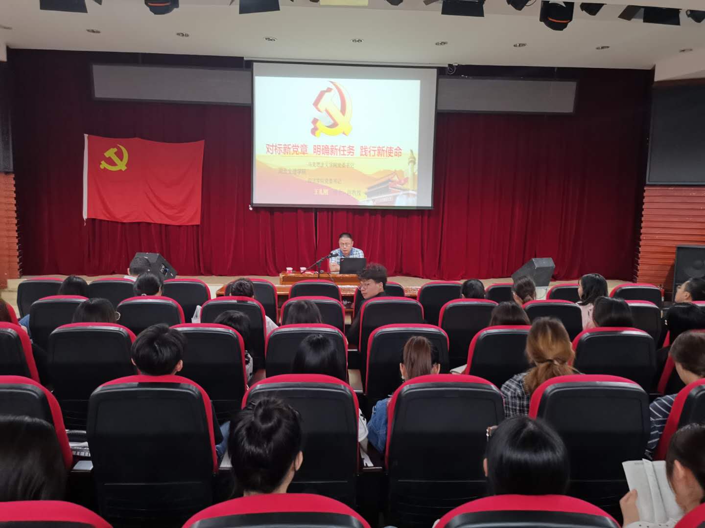 在此次党课中,王礼刚教授从“党章是政党安身立命之本”、“十九大党章的主要内容”等两个大的方面着手,带领全体成员进一步加强对党章学习和理解,亲切叮咛积极分子们“不要忘记在入党申请书上写的誓言”,并强调“党章是党的一面旗帜”、“作为一个党员,要树立坚定为人民服务的理想信念”。他指出,广大积极分子要充分利用“学习强国”平台加强理论学习,深刻体会如何让做一个合格的共产党员,以及如何充分发挥党的先锋模范带头作用。