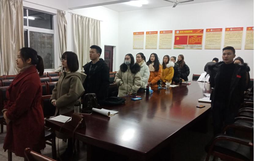 活动伊始,曹凤同志就本次主题党日的主题、举办目的以及学习内容向在座的学生党员、预备党员进行说明,并带领大家齐唱国歌,重温入党誓词,缴纳党费。随后,张桃香同志和兰瑞瑞同志分别带领全体学生党员、预备党员共同学习《党支部是党的基石》和《支部建设要抓在“点”上》等材料,根据两篇文章的特点发表了自己的看法,对在座的学生党员和预备党员表达了自己的殷切期望,希望大家也能像撰写这两篇文章的党员一样对《中国共产党支部工作条例(试行)》有着深刻的理解,希望大家能够提高书面表达能力,努力提升自己。