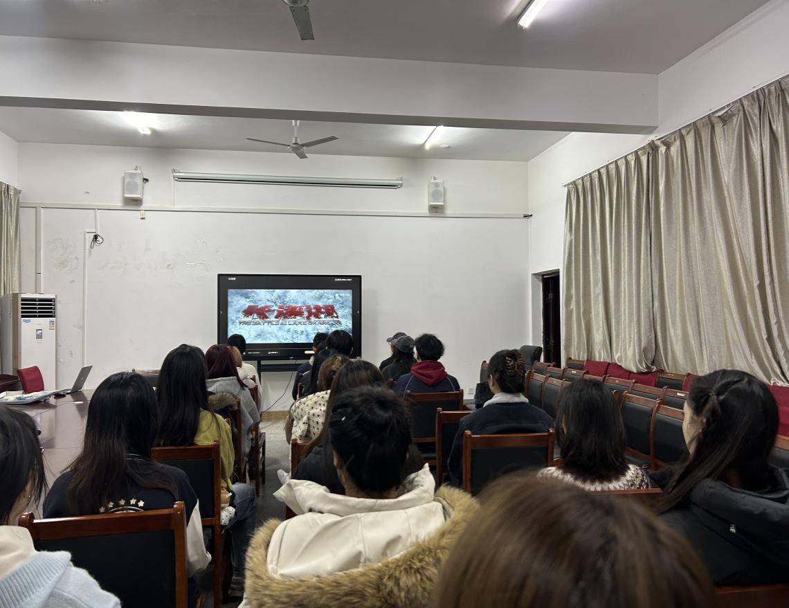 观影前,曹天阁同志指出,长津湖战役是朝鲜战争中一场极为惨烈的战役,志愿军战士们在极端严寒、物资匮乏的条件下,凭借着钢铁般的意志和对祖国、对人民的无限忠诚,奋勇杀敌、保家卫国,用鲜血和生命谱写了一曲曲英雄赞歌。此次观影活动是入党积极分子培养教育的重要环节,希望大家能够怀着崇敬之心认真观看,深刻感悟革命先辈的家国情怀和牺牲精神,从中汲取精神养分,坚定理想信念,以实际行动向党组织靠拢。