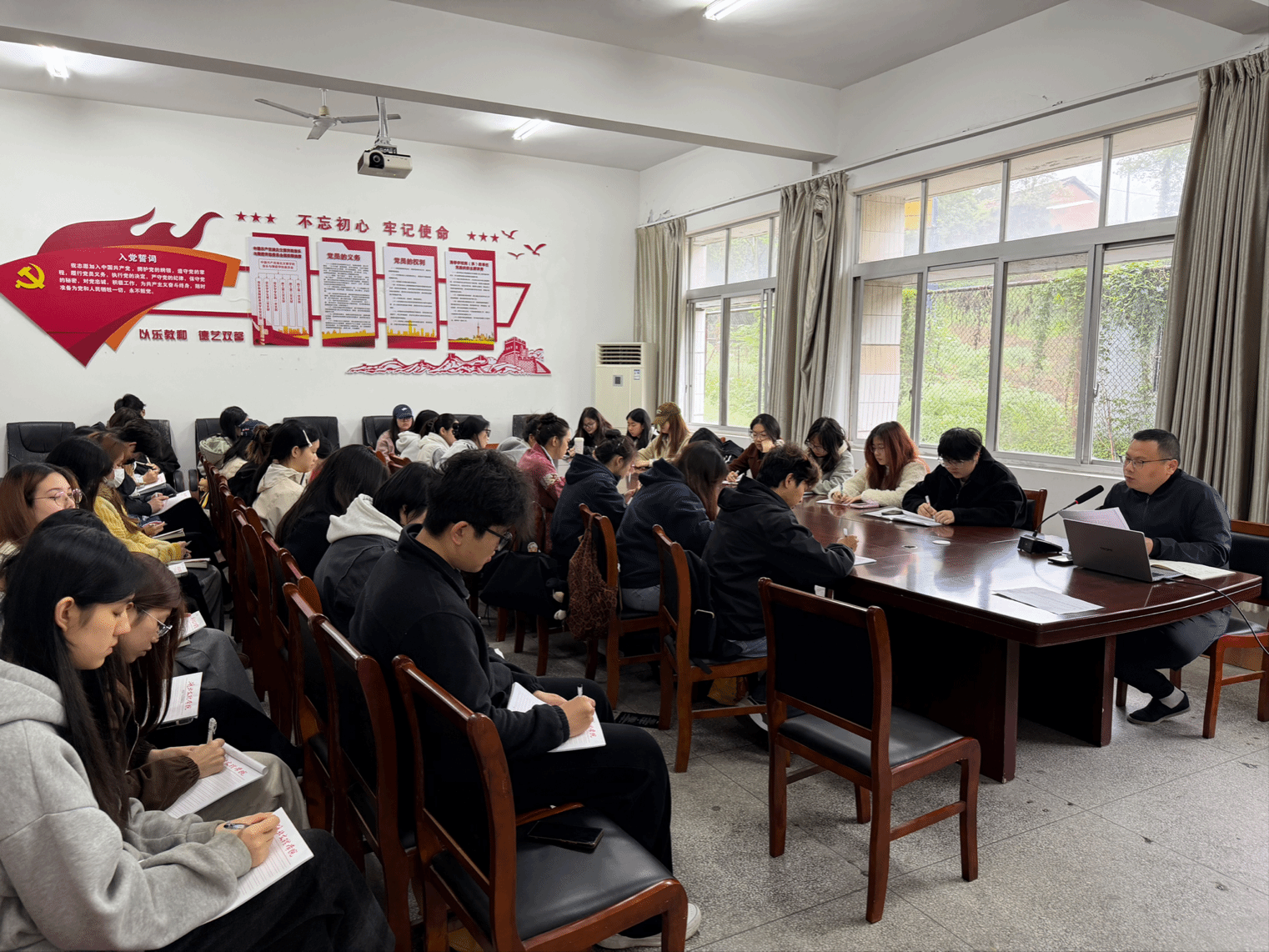 课堂上,姚朓朓结合入党积极分子的培养要求,强调了党章对党员义务、党的基层组织建设等方面提出的新要求,鼓励学员们既要深入学习党章条文,更要立足自身实际,将党章精神融入日常学习与生活中,以实际行动践行入党初心。他指出,作为新时代青年学子,要牢记为人民服务的宗旨,坚定理想信念,锤炼品德修为,自觉向党组织靠拢,不断提升自身的思想觉悟与政治素养。