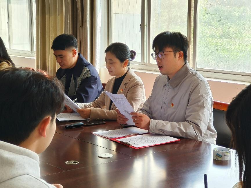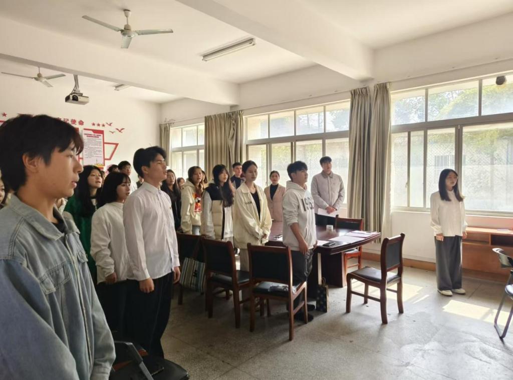 会议伊始,全体起立奏唱国歌。张博谦宣布第32期入党积极分子名单张益航同志带领全体党员重温入党誓词,学生党员代表王娇娇和培训班学员代表周子悦分别发言。