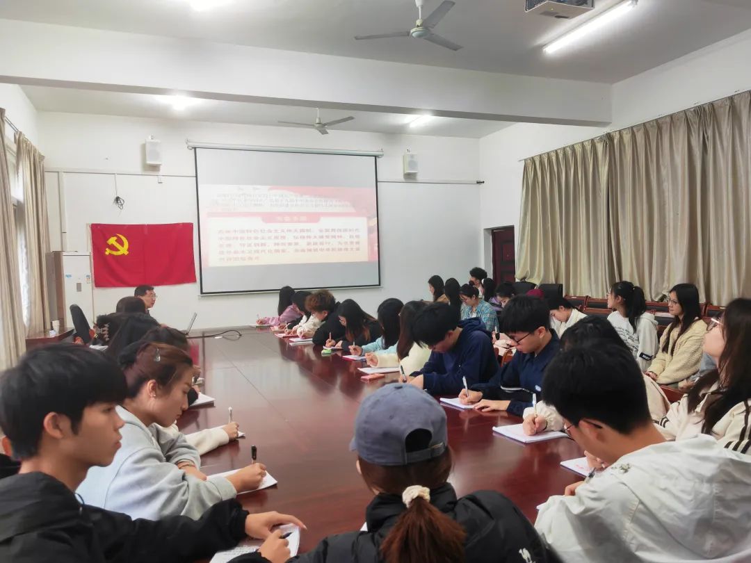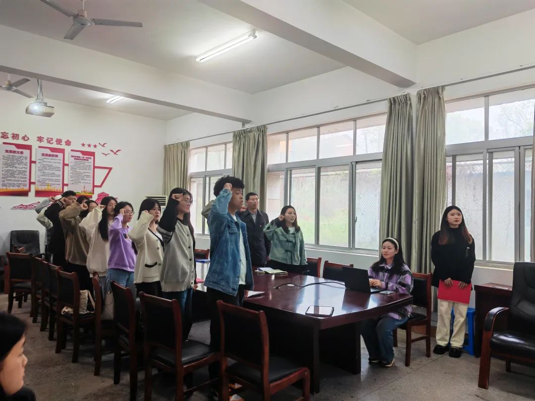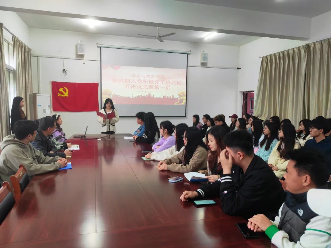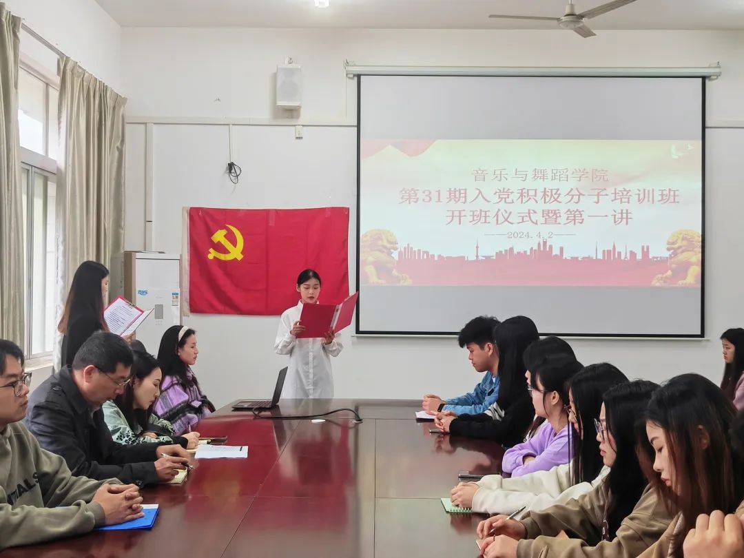 会议开始,全体起立奏唱国歌。由廖星铭宣布第31期入党积极分子名单,随后,全体党员重温入党誓词,学生党员代表刘雨荷和培训班学员代表邓嘉琦分别发言。