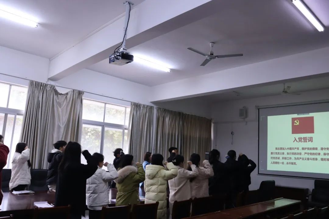 会议第一项,全体起立,奏唱国歌,重温入党誓词,随后集中学习了相关文件精神。
