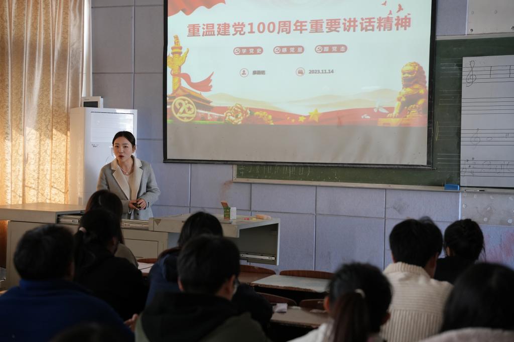 廖星铭带领同学们重温了建党100周年习近平总书记的重要讲话精神,学习了习近平总书记在讲话中提出的四个伟大成就、伟大建党精神、坚持九个必须以及对广大青年的寄语,鼓励同学们在今后要牢记总书记嘱托,作为新时代青年大学生,要以实现中华民族伟大复兴为己任,增强做中国人的志气、骨气、底气,不负时代,不负韶华,不负党和人民的殷切期望!