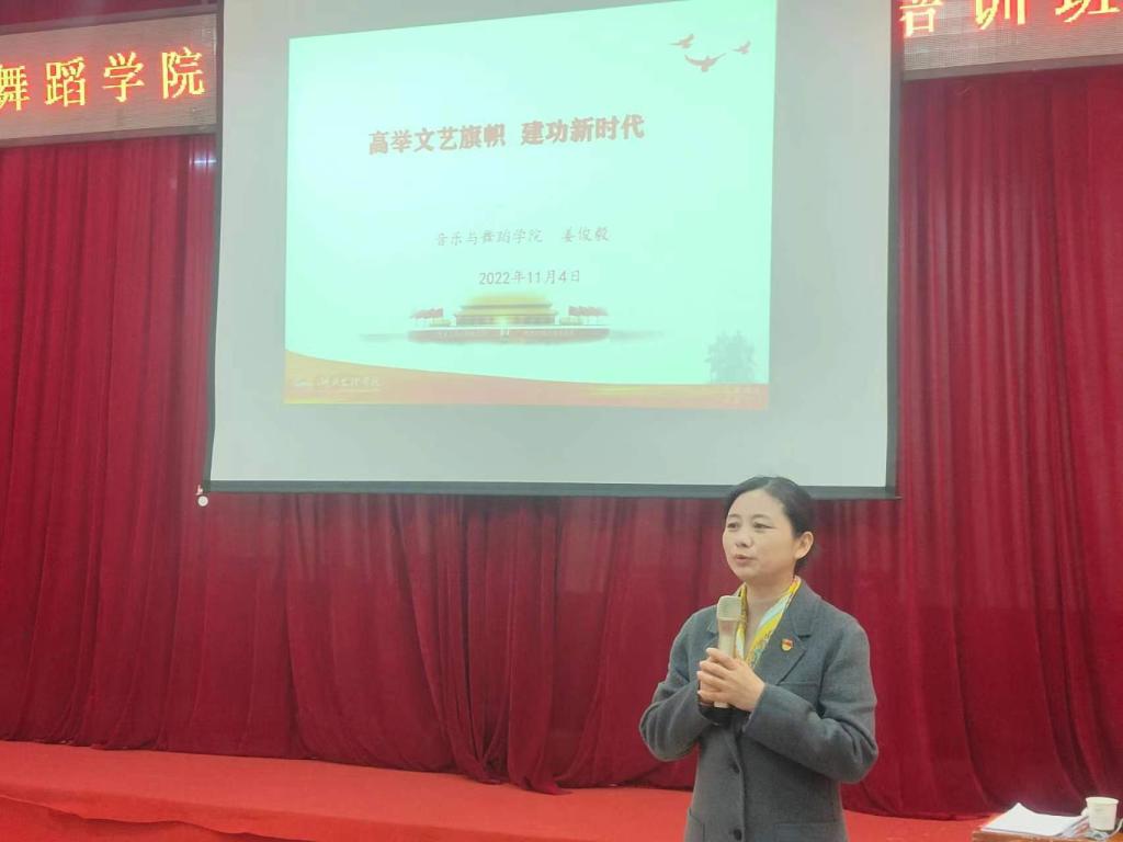 开班仪式结束后,姜俊毅以《高举文艺旗帜 建功新时代》为题,从“学党史,赓续红色血脉、知校史,秉承隆中精神、勤学习,高举文艺旗帜,建功新时代”等三方面开展论述,结合党的二十大精神,通过丰富翔实的历史资料、耳熟能详的党史故事,从理论的高度、实践的深度等方面诠释了中国共产党为什么“能”,提出了对党校学员的殷切希望,使大家对党的二十大精神和历史以及习近平总书记对文艺工作者的重要论述有了更加清晰的认识,为大家今后的学习和工作指明了方向。