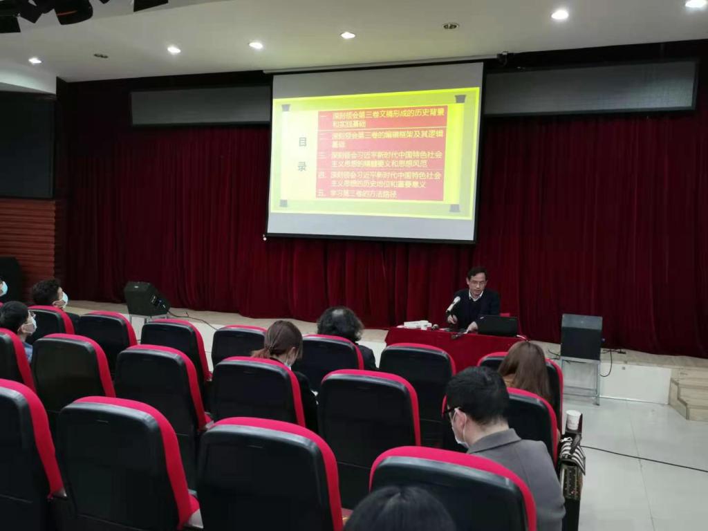 11月19日下午,音乐与舞蹈学院在学院多功能厅举办了学习《习近平谈治国理政》第三卷宣讲报告会,邀请学校党委宣传部常务副部长聂军教授作专题辅导报告。学院领导班子成员、全体教职工和部分学生党员、积极分子等近100余人参加了报告会。