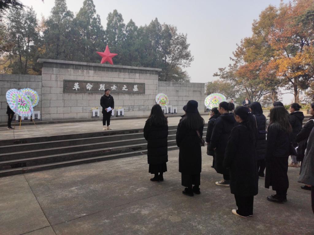 随后,同学们来到烈士陵园墓区参加公祭仪式,仪式由学院学生党总支书记程寒寒主持,首先全体人员奏唱中华人民共和国国歌,中华人民共和国国歌唱毕,全场肃立,全体人员向为中国人民解放事业和国家建设事业英勇献身的烈士默哀。程寒寒同志作为学生代表发言,希望大家牢记历史,勿忘国耻,作为青年大学生,我们应求知上进,追求真理,做一个有作为的人,高尚的人,有益于人民的人!