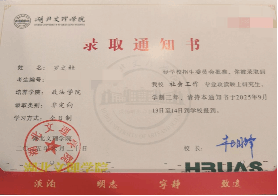 “吾生也有涯,而知也无涯。”学生工作的繁忙,加上广泛的兴趣爱好,都未能动摇罗之桂“学习至上”的理念。大学四年间,她从未在本专业的学业上有过懈怠。支教结束后的大四学年,罗之桂决定挑战自我,跨专业报考社会工作专业的硕士研究生。今年考研国家线公布后,罗之桂凭借不错的考研总成绩,与2025年的研究生入学资格成功交汇,这进一步坚定了她继续提升自我的决心。“还要继续学习深造,为了成就更好的自己,给自己创造更多的可能!”