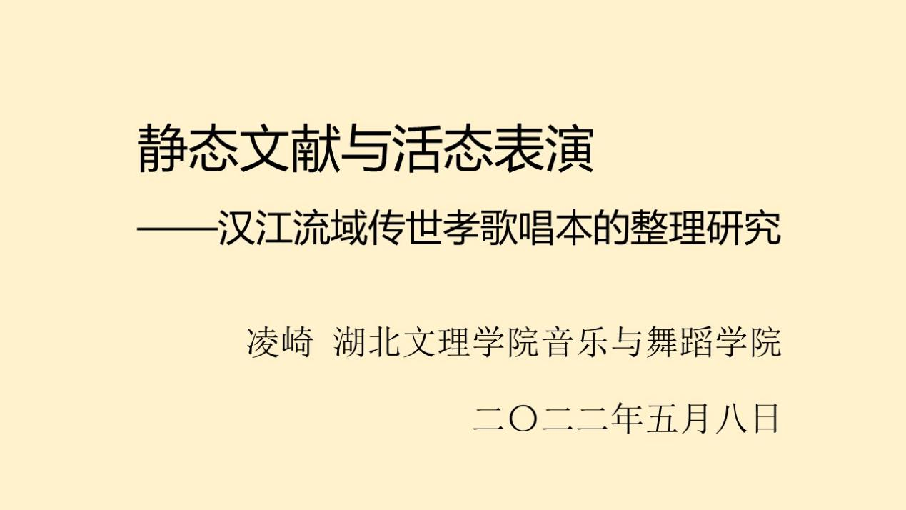 汉江流域传世孝歌唱本是地方民间文献,特色鲜明,文化内涵丰富,具有重要的文献价值和音乐价值。凌崎认为“当下所见的孝歌唱本是孝歌活态表演的历史凝固,并已成为‘地方性知识’的文化标识”,提出“唱本活态化”的构想和实践得到与会专家的充分肯定。
