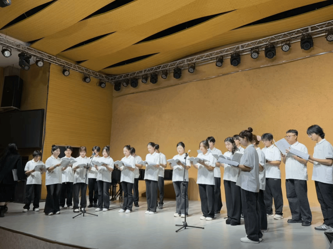 在音乐会的尾声,全体同学共同合唱了一首经典的励志歌曲。歌声整齐而洪亮,充满了力量和信心,展现了音乐学2413班团结一心、积极向上的精神风貌。
