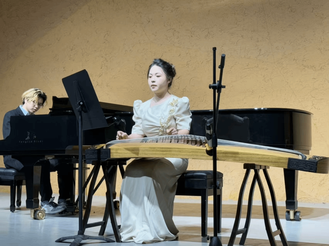 除了器乐演奏和歌曲演唱,还有精彩的古筝表演。古筝那古朴典雅的音色,仿佛穿越了时空,将大家带到了古代的宫廷和山林之间。演奏者身着传统服饰,优雅地拨弄着琴弦,演绎出一曲曲动人的古风韵律,让同学们领略到了中华传统文化的博大精深。