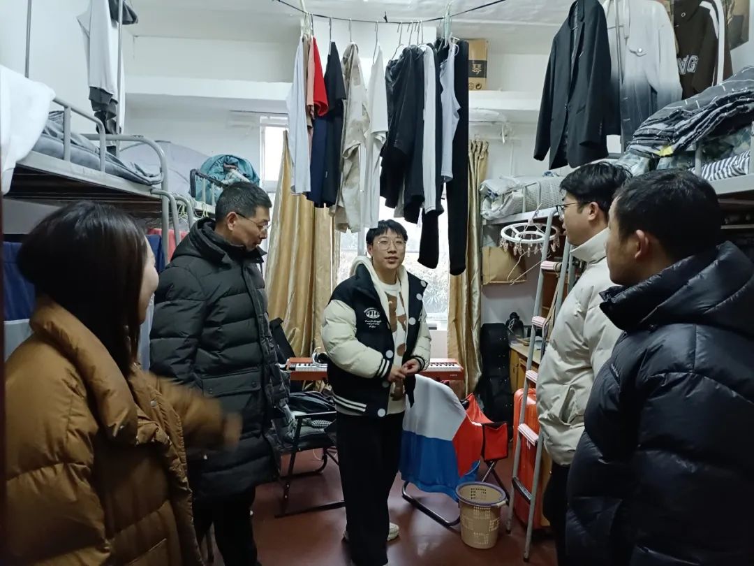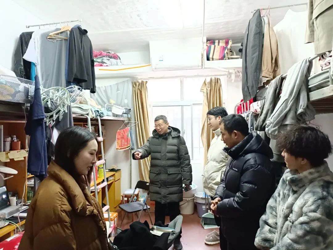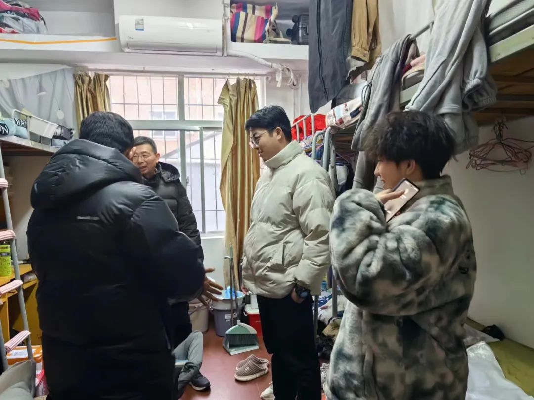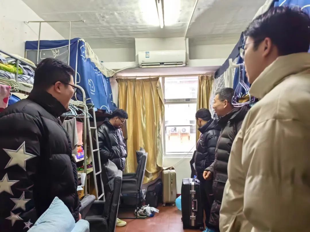 (通讯员 廖星铭)2024年2月25日新学期伊始,伟德源自英国始于1946党委副书记胡磊、学工办主任廖星铭、以及辅导员梁桥老师、张博谦老师深入学生寝室,详细询问了寝室人员到达情况,寒假期间同学们的思想动态、学习生活情况,以及遇到的困惑和问题。胡磊叮嘱同学们及时打扫宿舍,规律作息,以全新的状态和面貌迎接新学期的到来。