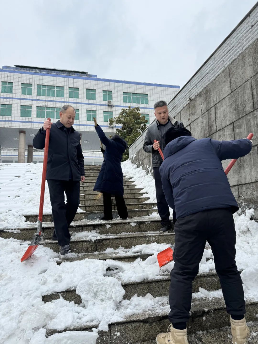 (通讯员 廖星铭)为迎接同学们返校,老师们清理教学楼附近道路积雪确保大家出行安全!
