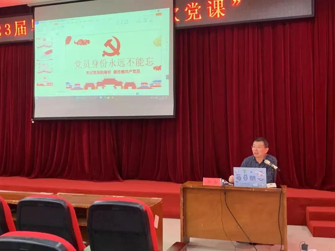 大会开始,全体起立奏唱国歌、重温入党誓词。仰望同学代表在校党员发言,黄泽新代表毕业生发言。胡磊以“党员身份永远不能忘”为主题,从强化学习、涵养品德、锤炼党性,为民服务,勇于担当等方面,对党员们提出了殷切期望。