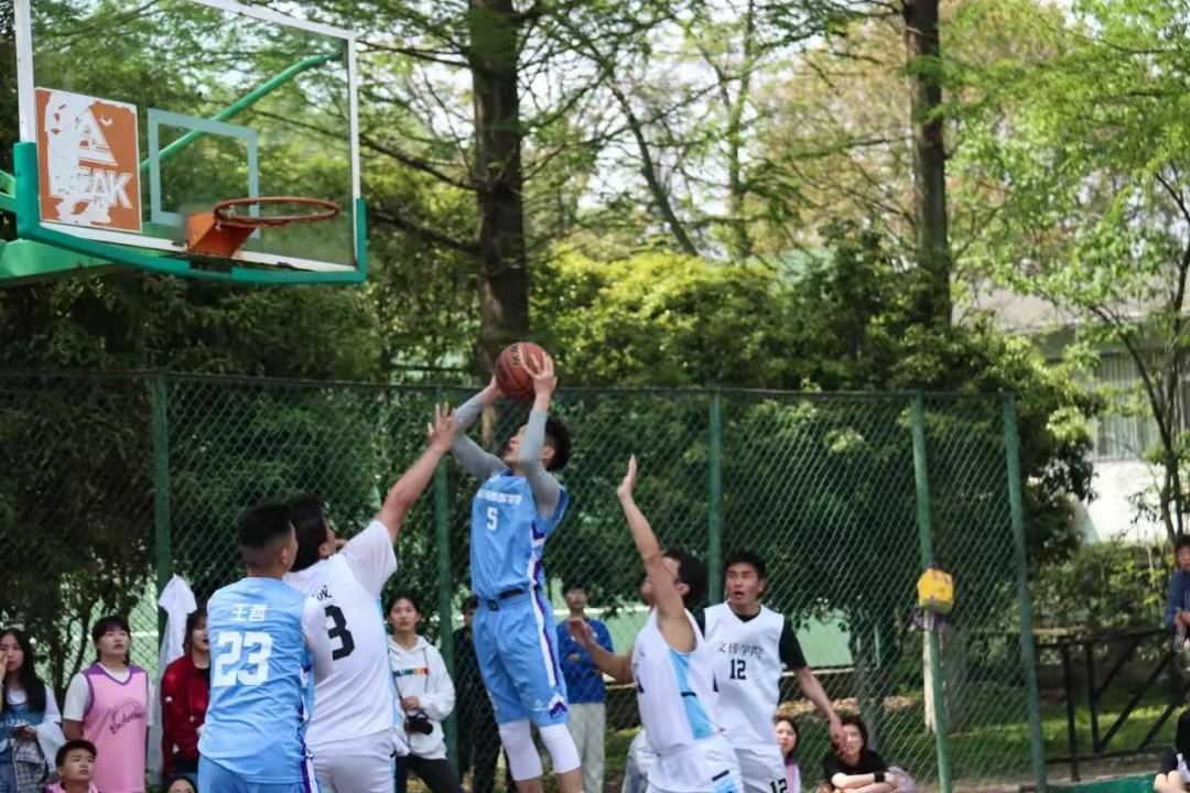 本次比赛采取分组循环赛,按积分排名的方式进行。赛前,学院为本次比赛购买了统一服装和应急药品等物资,还积极组织运动员开展有序的训练,为比赛做好充分准备。赛场上,运动员们奋力拼搏,身手矫健,每一次投篮,都展现了绝佳球技。场下的啦啦队纷纷为的队员们加油呐喊,助威声次起彼伏,球队教练也及时为球员做出战术调整。我院运动员战术得当,配合默契,展现了可贵的凝聚力和强大的战斗力,赛出了友谊,赛出了风采。