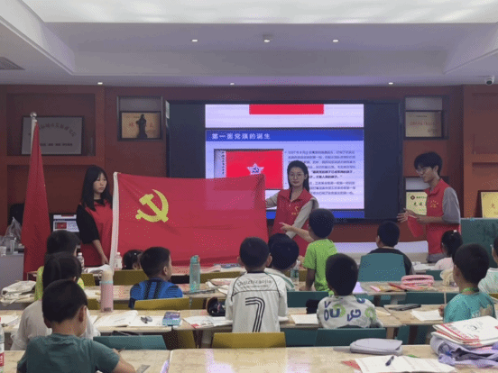 (通讯员:张博谦 罗晗语)“有小朋友知道今天是什么日子吗?” 在檀溪湖社区 “暑假学堂” 中,志愿者话音刚落,教室里便热闹起来,小朋友们七嘴八舌地讨论着。“今天是中国共产党建党成立 104 周年!” 在这个具有特殊意义的日子里,一场别开生面的红色教育活动在这里精彩开展。