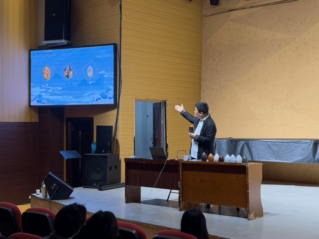 此次讲座采取了艺术与体验相结合的方式,不仅让同学们近距离触摸非遗瑰宝、领略古埙艺术的千年风韵,更让中华优秀传统文化在校园里落地生根、焕发生机。学院成功为师生搭建起了解非遗、走近传统的桥梁,助力广大师生在艺术熏陶中增强文化自信,在传承创新中赓续中华文脉。