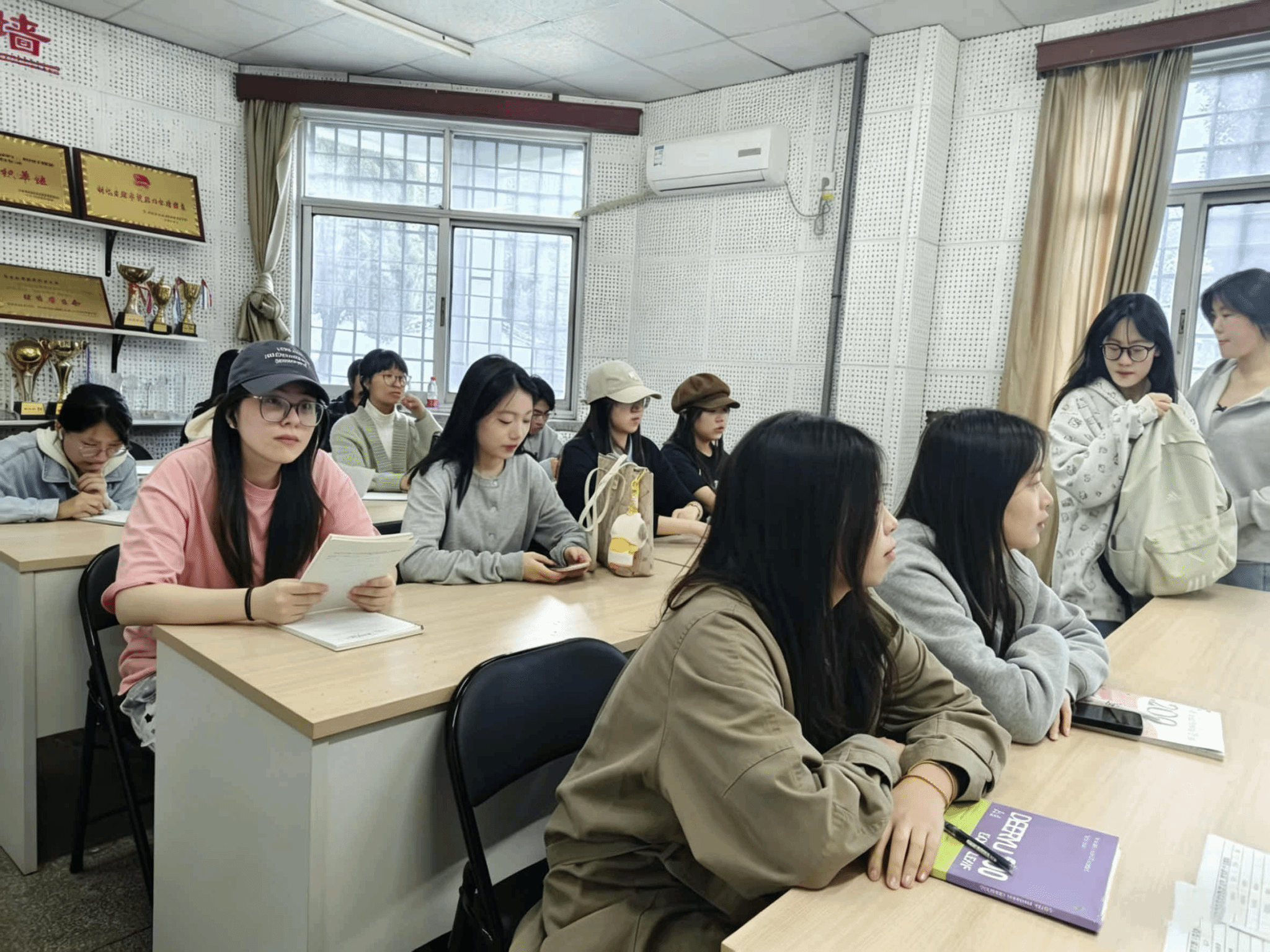 活动现场,同学们围绕英语四级听力、阅读、写作、翻译等关键题型展开深入交流,分享各自的备考方法、刷题技巧与复习规划,针对备考中遇到的难点问题互相探讨、共同解答。大家结合自身学习经验,交流备考心得、梳理知识盲区,在互动交流中查漏补缺,进一步明晰了四级备考方向,掌握了更实用的应试技巧。