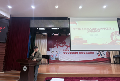 开班仪式在庄严的国歌声中拉开帷幕,全体人员起立齐唱国歌,尽显青年学子向团组织靠拢的赤诚与坚定。陈庚作开班动员讲话,强调共青团是党的助手和后备军,系统培训是提升青年思想觉悟与政治素养的关键,勉励学员立足音舞专业特色,将艺术学习与思想成长融合,端正入团动机,严守培训纪律,以实际行动争取早日入团。