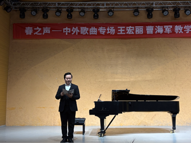 (通讯员:陈庚)2025年3月27日晚,“春之声——中外歌曲专场”王宏丽、曹海军教学汇报音乐会精彩上演。本场音乐会由徐源廷老师主持,汇聚了众多音乐专业学子,为观众带来了一场视听盛宴。