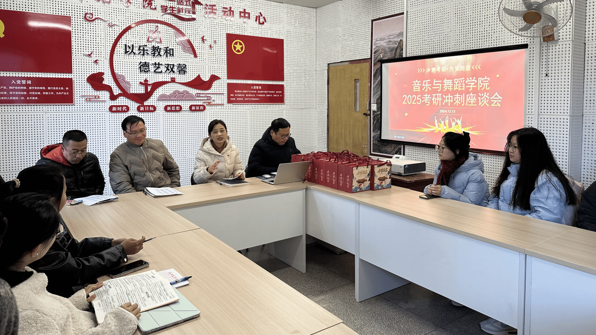 座谈会上,学院领导认真听取了考研学子们的备考情况汇报,深入了解他们在复习过程中遇到的困难和压力。姜俊毅书记在鼓励同学们时表示,考研是一场考验知识与意志的征程,大家在备考期间付出的努力和汗水,都将化作考场上的自信与从容。他寄语学子们要坚定信念,保持良好的心态和作息,以最佳状态迎接考试。