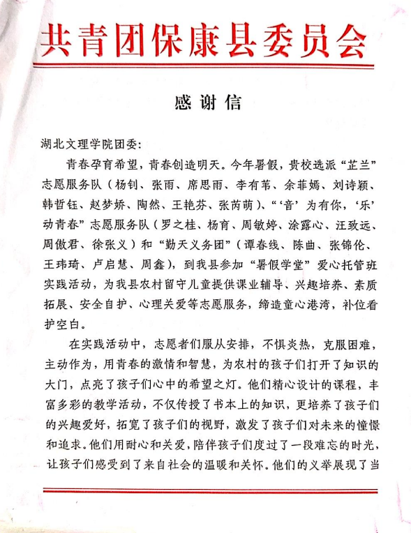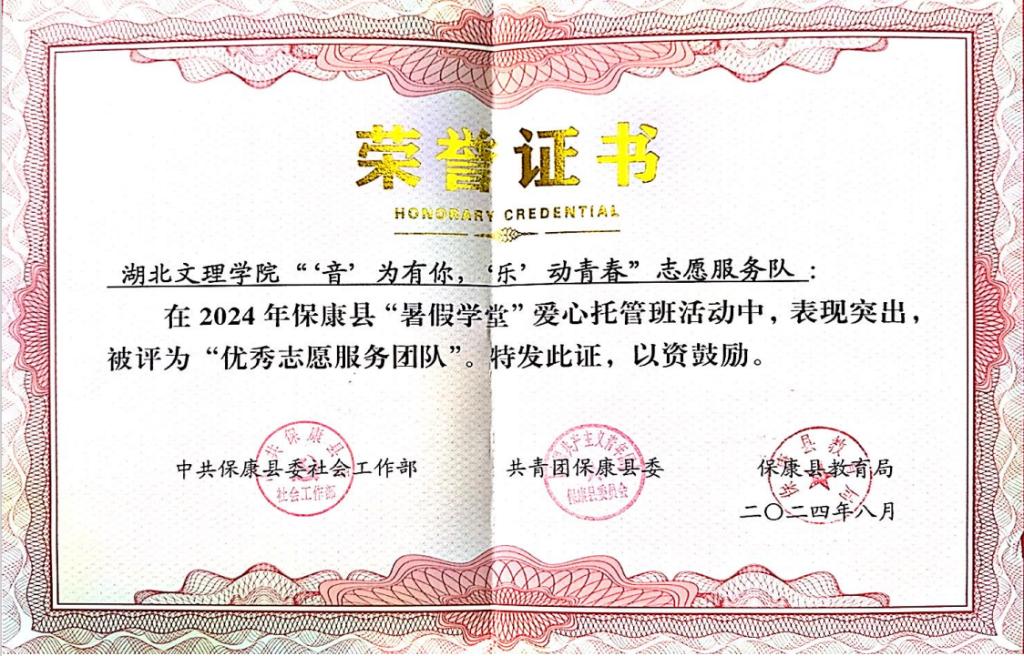 (通讯员 张博谦)近期,襄阳市2024年“暑假学堂”优秀志愿服务队名单公布,我院“音”为有你,“乐”动青春志愿服务实践队榜上有名。