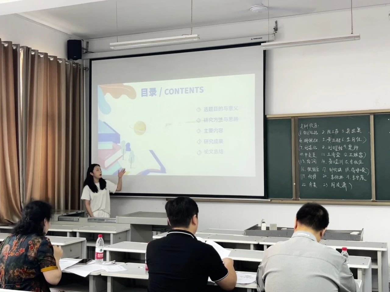 在全体教师和毕业生的积极配合与努力下,整个答辩过程,秩序井然,程序规范;答辩秘书积极配合,清点各组人数,认真做好记录;答辩学生准备充分,汇报清晰,认真回答老师提问。