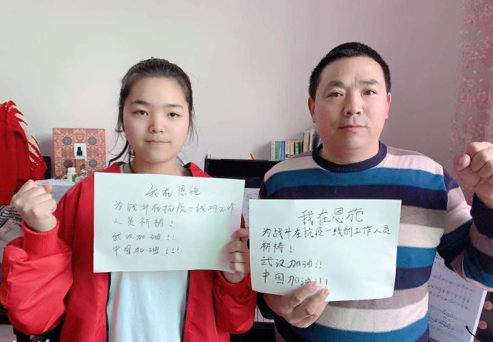 于寒林和父亲为战“疫”加油 图片由通讯员提供