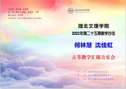 本次音乐会是何林慧与沈佳虹二位老师在校十余年教学经验的一次总结,也是对学生们一次实践检验。参演学生都是在专业技能中刻苦、勤奋的,通过借此机会来展示她们专业技能光彩亮丽的一面。