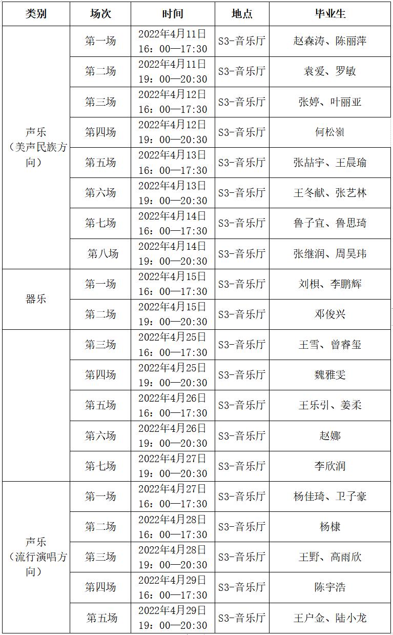 2022届音乐表演系毕业音乐会预告