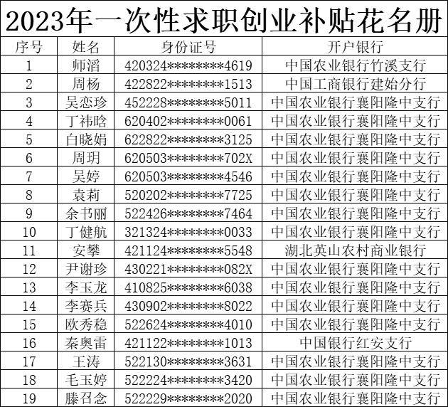 附件:2023年一次性求职创业补贴名单