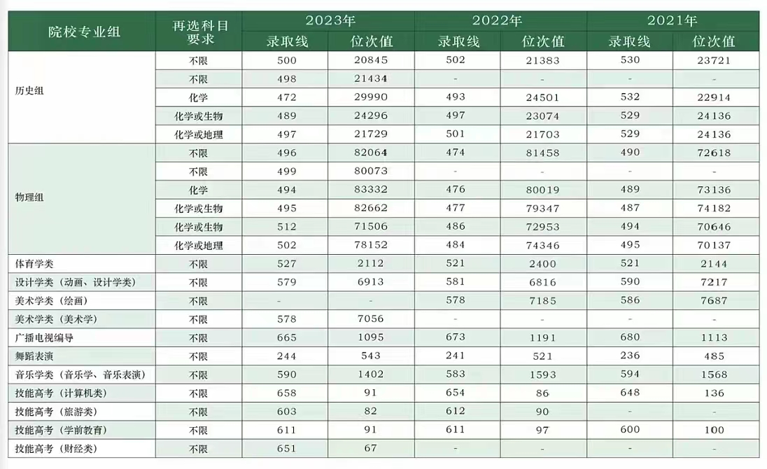 近三年招生录取线与位次值